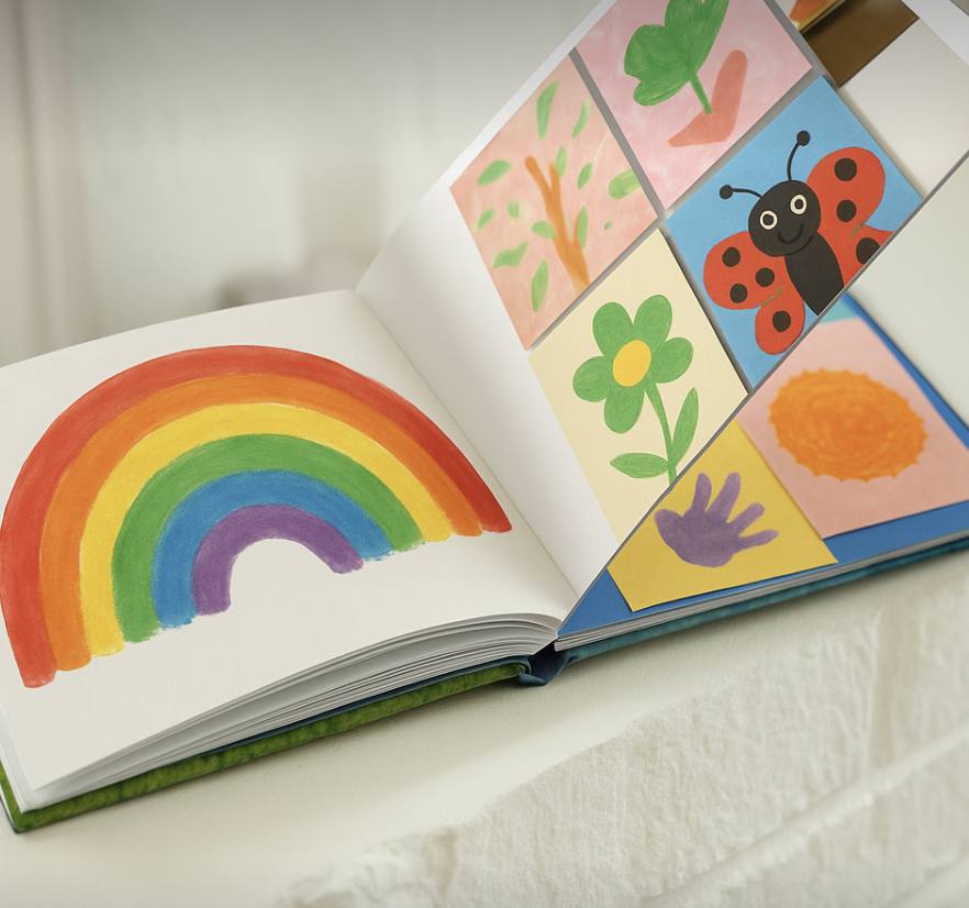 É simples: enche a tua Pickstory Box com os desenhos, e nós transformamos tudo num livro cheio de cor, emoção e criatividade — uma verdadeira recordação para a vida.